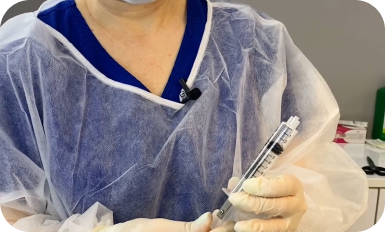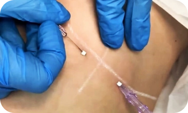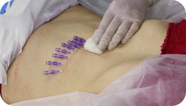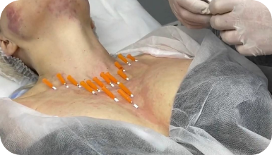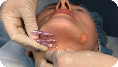 Используемый материал: шприц, канюля, раствор для липоредукции, нити с зубцами на канюле из PCL